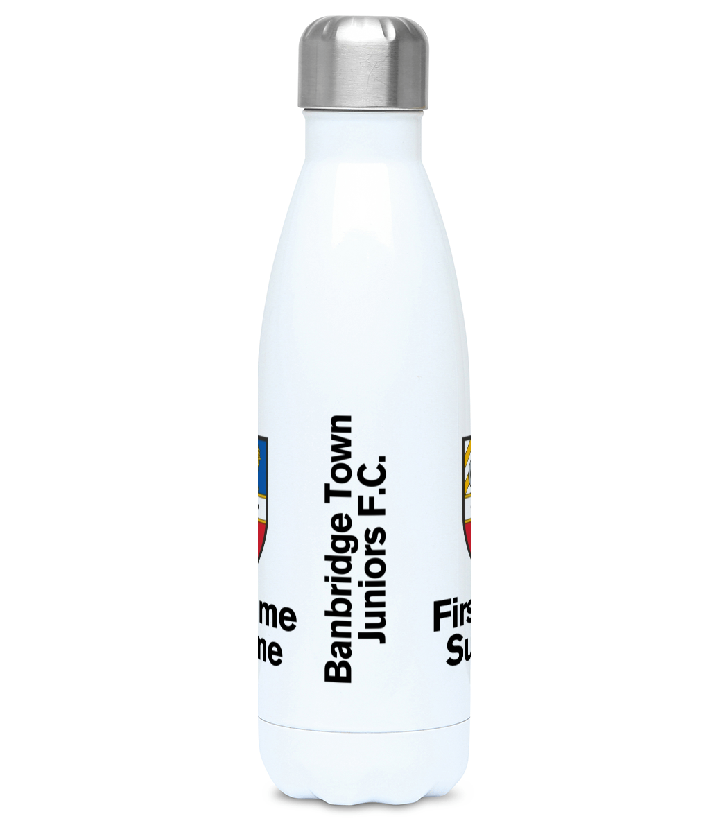 Show your team pride wherever you go with our Personalised Banbridge Town Juniors F.C. insulated chilli bottle. Perfect for training, match days, work, or adventures — keeping your drinks ice-cold or piping hot for hours..