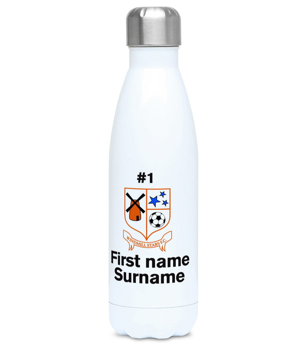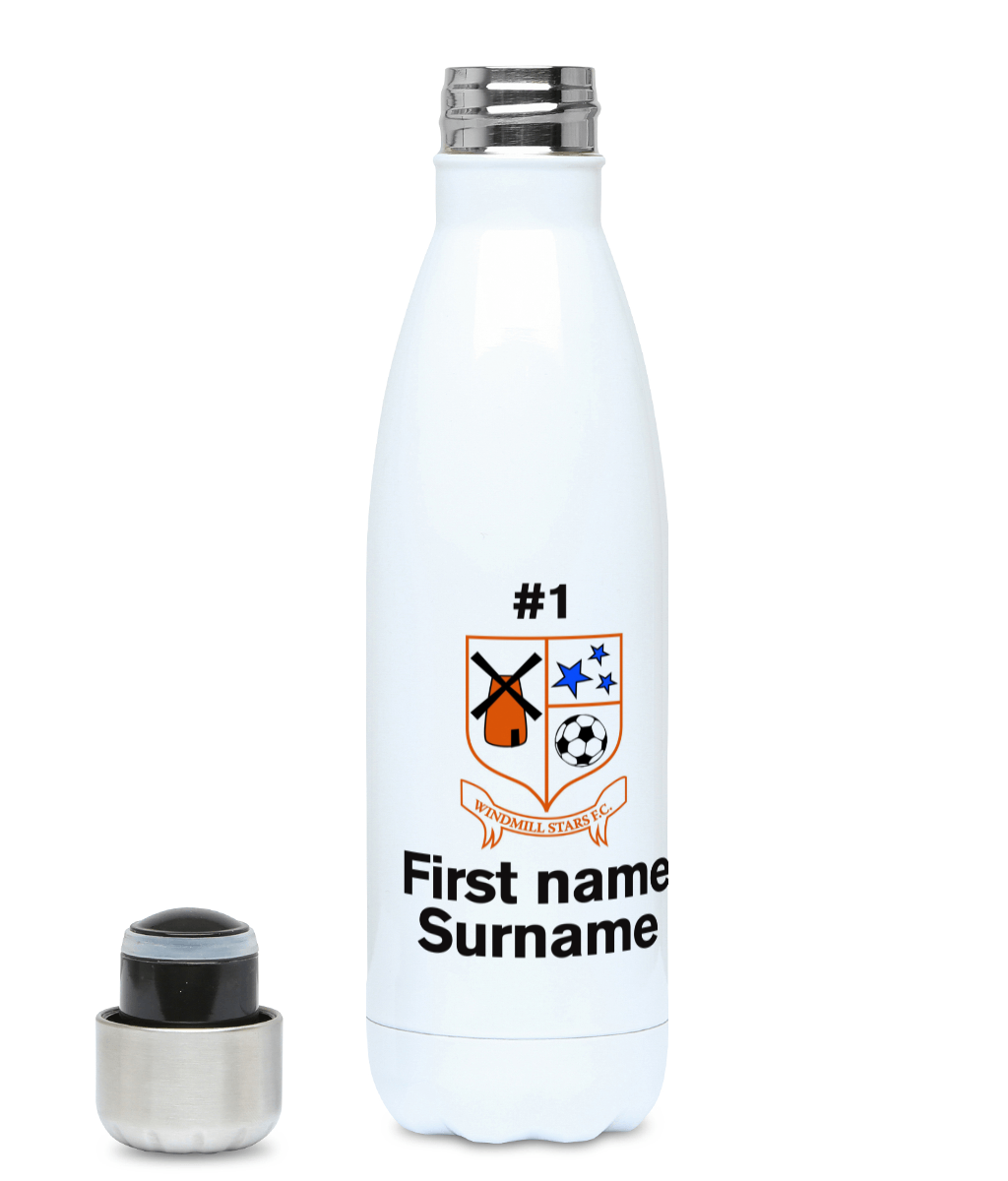Show your team pride wherever you go with our Personalised Windmill F.C. insulated chilli bottle. Perfect for training, match days, work, or adventures — keeping your drinks ice-cold or piping hot for hours..